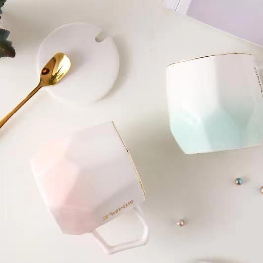 馬卡龍色系漸層 幾何漸層陶瓷杯