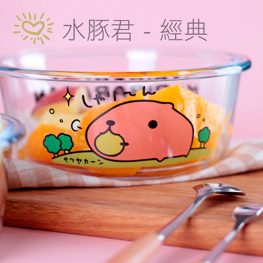 日本【水豚君KAPIBARASAN】圓形玻璃保鮮盒620ML-經典