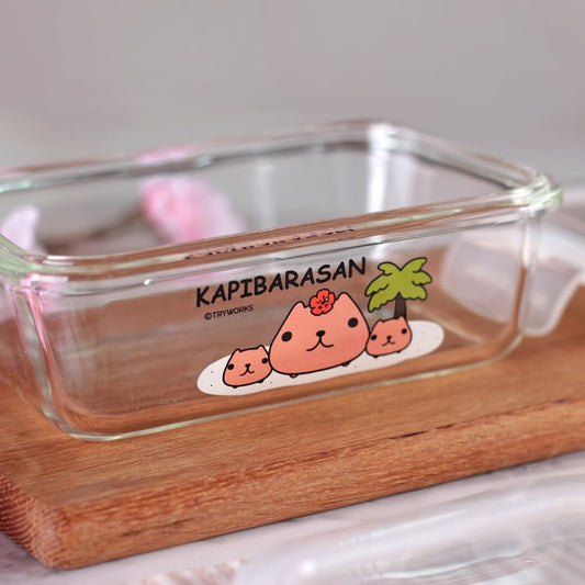 日本【水豚君KAPIBARASAN】 長形玻璃保鮮盒570ML-夏威夷