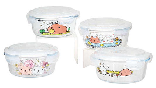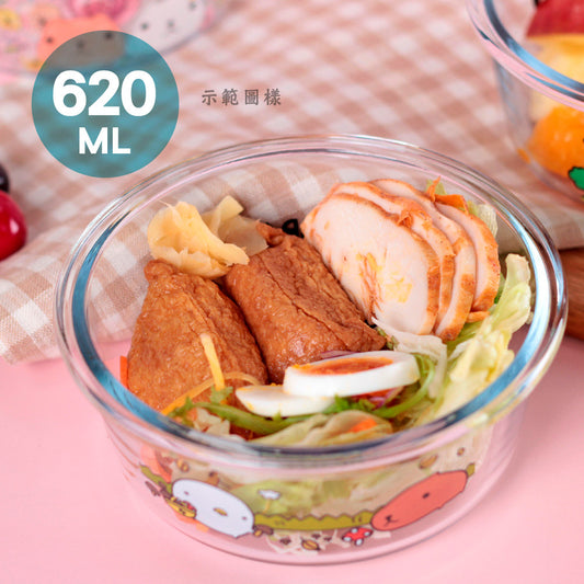 日本【水豚君KAPIBARASAN】圓形玻璃保鮮盒620ML-經典