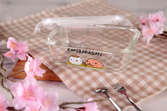 日本【水豚君KAPIBARASAN】 長形分隔玻璃保鮮盒840ML-採菇趣
