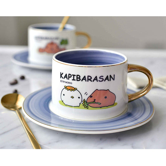 日本【水豚君KAPIBARASAN】漸變咖啡杯盤組(採菇趣)