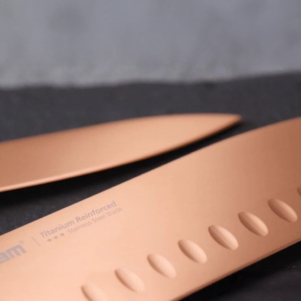 Neoflam 耐用富林鈦金刀具三德刀,為您的廚房帶來專業級的切割體驗。鈦金刀面不僅耐磨耐用,讓您輕鬆切出完美食材。符合人體工學設計的握柄,提供舒適穩固的抓握感,長時間使用也不易疲勞。無論是切菜、切肉或削皮,Neoflam 鈦金刀具都能助您一臂之力,讓烹飪過程更加得心應手,輕鬆享受美味佳餚。